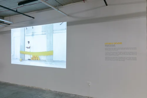 The works in Entirely Devoid echo the breaks in continuity and familiarity of our current moment. Themes of agency, futility, absurdity, and misuse underpin the exhibition while adaptations and renegotiations of the familiar weigh heavy on the minds of individuals and communities.