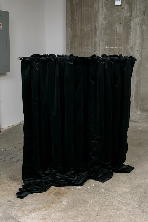 Curtain Lift/Curtain Drop, operates within a system that is contentious. As the curtain labors upward, the anticipation of reaching the top rises in the viewer, culminating in a stagnant curtain. This implied stability is ultimately withdrawn as the curtain falls and the process begins again, becoming both untenable and unsustainable.