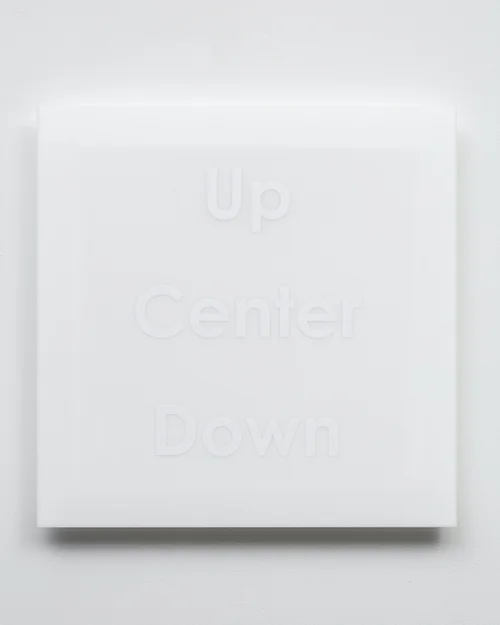 Similar to the site-specific works in this exhibition, Duvall’s Tautologies In White challenge the fortitude of meaning when subtle repetitions enter our language. Throughout Entirely Devoid we are asked to re-examine the assumptions we bring to the function of language and objects.